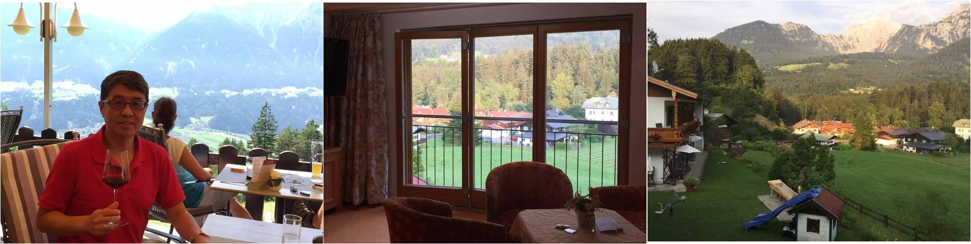 今天從德國(guó)開車進(jìn)奧地利,又從奧利亞開回德國(guó),看三個(gè)地方,跑300公里,沿途阿爾卑斯山脈的田園風(fēng)光太美了!途中在一個(gè)風(fēng)景如畫的阿爾卑斯山邊吃午餐。在歐洲小城鎮(zhèn),任何地點(diǎn)的餐廳價(jià)格都差不多,不會(huì)因是旅游景點(diǎn)而漲價(jià),讓人很放心。3人花20歐一頓簡(jiǎn)單的午餐就夠了。什么時(shí)候國(guó)內(nèi)旅游景點(diǎn)餐廳能達(dá)到這樣的程度呢?又住進(jìn)鄉(xiāng)村家庭旅館,窗外風(fēng)景怎么樣(很后3張)?