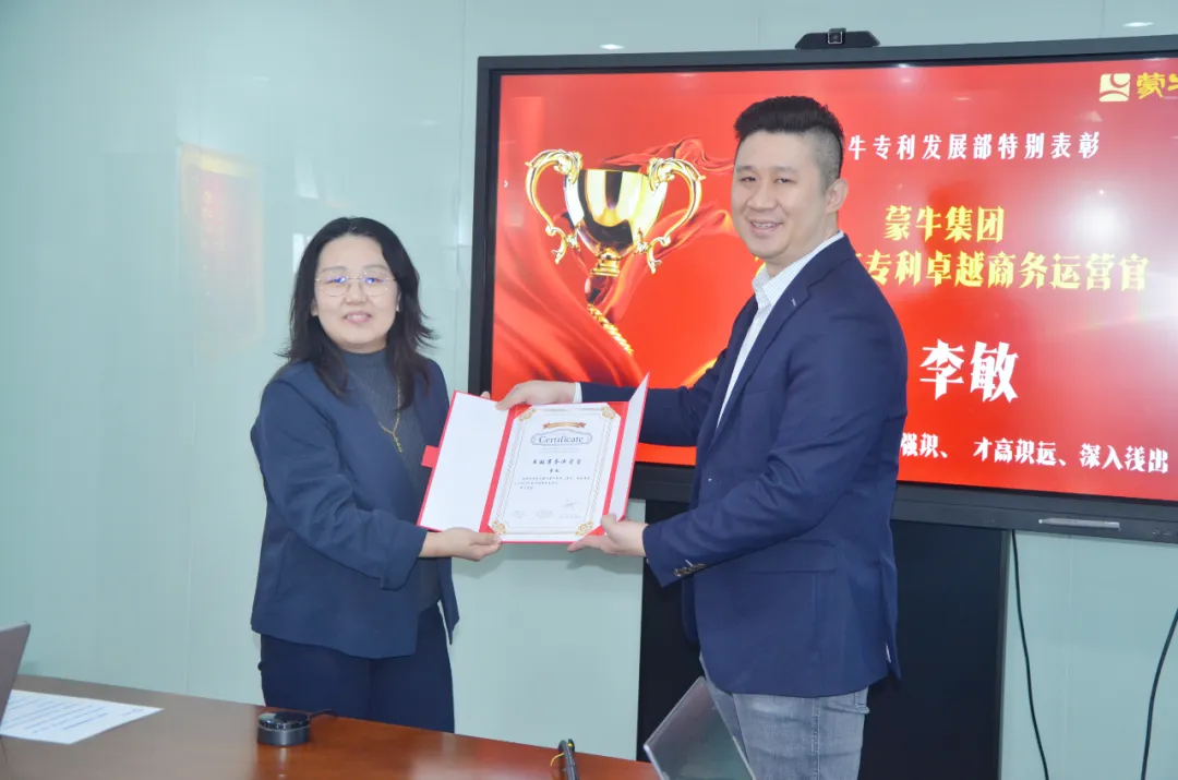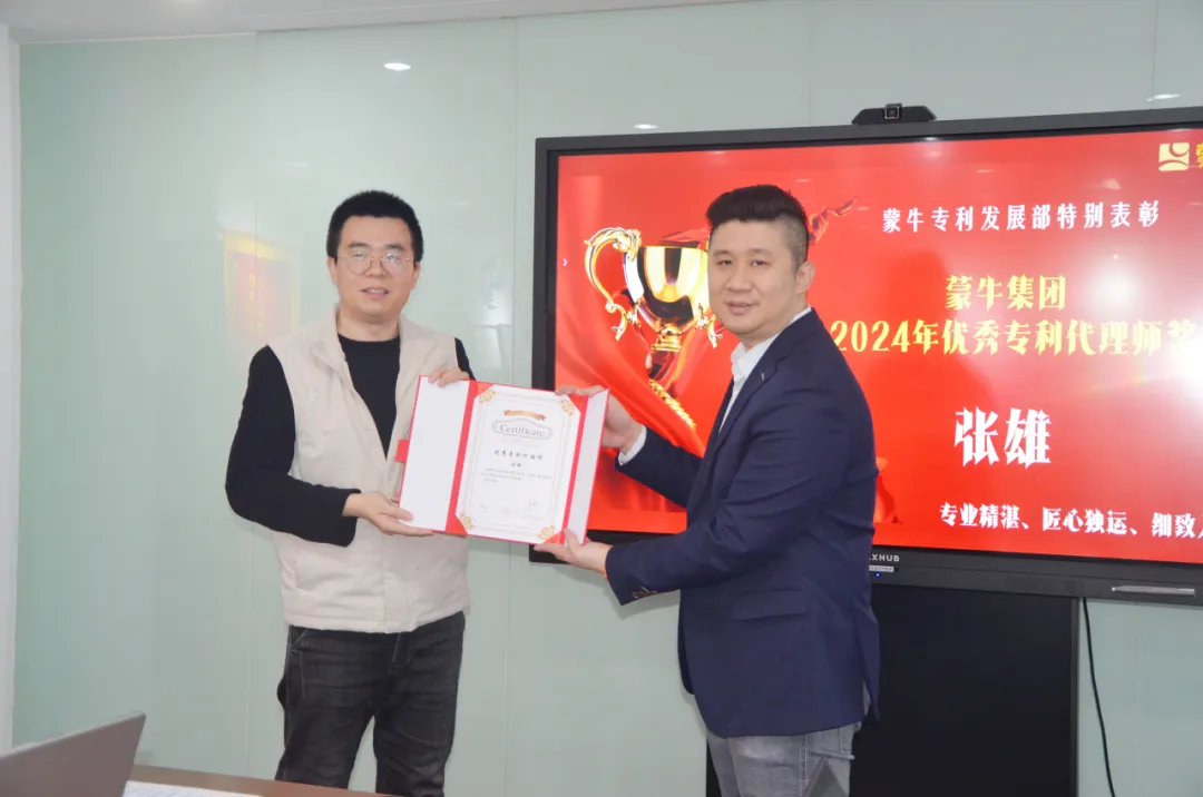 1月2日,蒙牛集團全球研發(fā)創(chuàng)新中心專利發(fā)展部總監(jiān)何萬興博士一行到訪三聚陽光,授予三聚陽光“最佳專利代理伙伴”榮譽,頒發(fā)“2024年專利卓越商務(wù)運營官”榮譽給三聚陽光常務(wù)副總裁李敏,并頒發(fā)“專利商務(wù)達人”“優(yōu)秀專利代理師”榮譽給多位代理師,以表彰三聚陽光在專利代理和商務(wù)運營中的卓越表現(xiàn)。