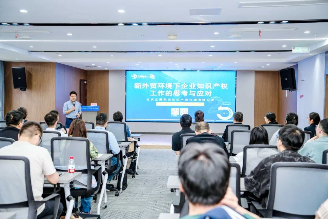 作為本次培訓(xùn)活動的重要環(huán)節(jié),三聚陽光杭州分公司負責(zé)人張鳴受邀發(fā)表了題為《新外貿(mào)環(huán)境下企業(yè)知識產(chǎn)權(quán)工作的思考與應(yīng)對》的主題演講。張鳴是資深的專利代理師和專利分析師,同時擔(dān)任杭州高新開發(fā)區(qū)(濱江)知識產(chǎn)權(quán)服務(wù)業(yè)促進會副理事長等多項社會職務(wù),在知識產(chǎn)權(quán)咨詢服務(wù)領(lǐng)域擁有豐富經(jīng)驗。他的分享緊密結(jié)合當(dāng)前復(fù)雜多變的國際貿(mào)易形勢,特別是中美貿(mào)易關(guān)系下的挑戰(zhàn)與機遇。