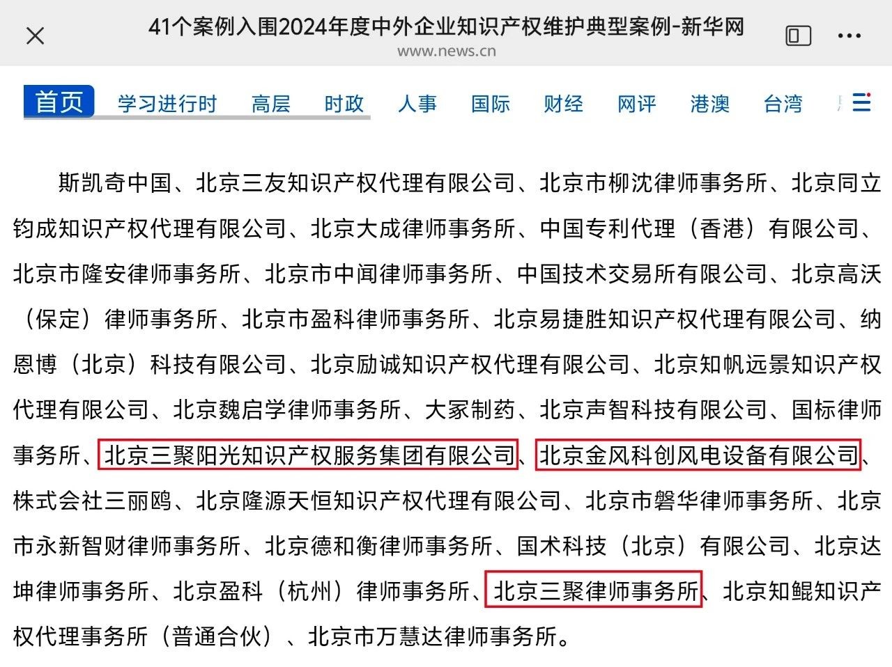 三聚陽光代理的4件知識產(chǎn)權(quán)案例成功入選,其中包括: