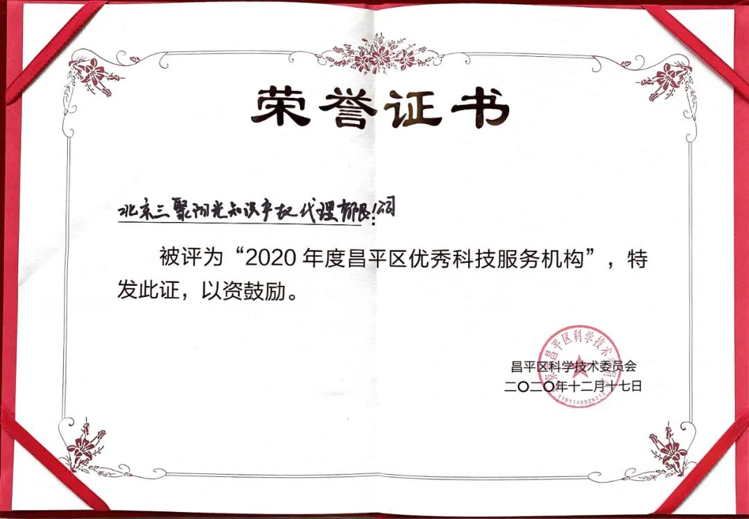 三聚陽光獲評(píng)“2020年度昌平區(qū)優(yōu)秀科技服務(wù)機(jī)構(gòu)”