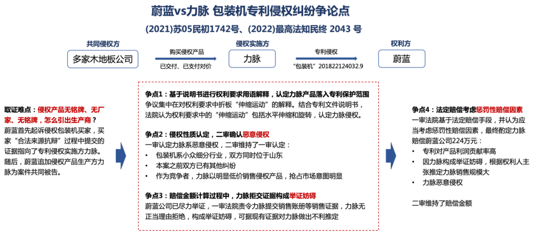 小行業(yè)、大賠償,北京三聚陽(yáng)光知識(shí)產(chǎn)權(quán)代理有限公司和北京易聚律師事務(wù)所聯(lián)合代理專利權(quán)人諸城市蔚藍(lán)自動(dòng)化設(shè)備有限公司的“包裝機(jī)”專利侵權(quán)糾紛案二審于近日結(jié)案,最高法在最新判決【(2022)最高法知民終2043號(hào)】中維持了一審對(duì)被告山東力脈智能科技股份有限公司舉證妨礙的認(rèn)定,確認(rèn)了一審判決給出的2,243,833元賠償金額。