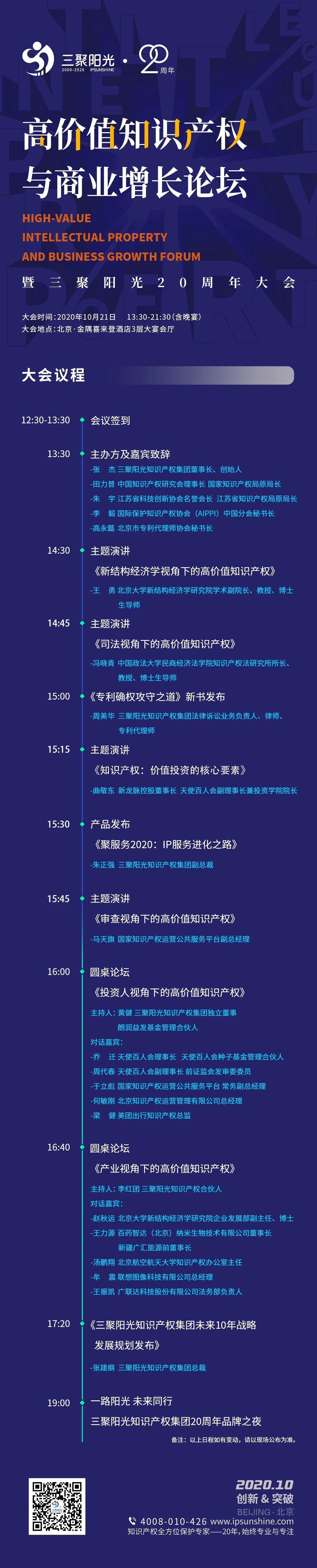 重磅預(yù)告 | 高價(jià)值知識(shí)產(chǎn)權(quán)與商業(yè)增長(zhǎng)論壇暨三聚陽(yáng)光20周年大會(huì)亮點(diǎn)預(yù)告