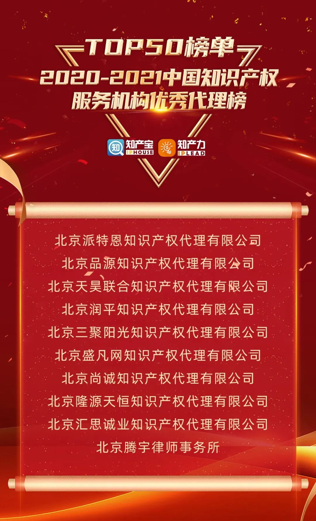 “2020-2021中國知識產(chǎn)權服務機構優(yōu)秀代理榜TOP 50 ”由行業(yè)媒體知產(chǎn)寶&知產(chǎn)力評選公布,該榜單在商標、專利的代理數(shù)量的基礎上,綜合考量了代理機構在商標及專利代理業(yè)務中的授權率、客戶質量、以及在復審和無效階段的表現(xiàn)等因素。 在此次入選“2020-2021中國知識產(chǎn)權服務機構優(yōu)秀代理榜TOP 50 ”之前,三聚陽光還在2019年入選了由知產(chǎn)寶&知產(chǎn)力評選的“2018-2019年度中國知識產(chǎn)權訴訟代理機構專利行政榜TOP10”。