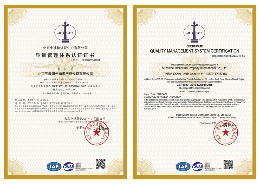 4月,三聚陽光知識產(chǎn)權(quán)集團旗下北京三聚陽光知識產(chǎn)權(quán)代理有限公司順利通過ISO9001質(zhì)量管理體系評審工作,獲得ISO9001質(zhì)量管理體系認證證書。三聚陽光一直專注于全面提升知識產(chǎn)權(quán)代理機構(gòu)的服務(wù)水平、服務(wù)質(zhì)量、專業(yè)能力和素養(yǎng)。通過ISO9001認證,表明北京三聚陽光知識產(chǎn)權(quán)代理有限公司在專利代理、商標(biāo)代理、專利分析等方面已經(jīng)達到國際標(biāo)準(zhǔn),并且能持續(xù)穩(wěn)定地向客戶提供滿意和符合預(yù)期的相關(guān)服務(wù)。