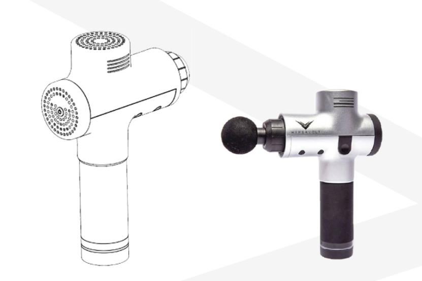 2. 證據(jù)的證明力:視頻中只有幾秒的畫面,并且只能看到筋膜槍的一個(gè)側(cè)面,握把等處還被使用者的手部遮擋。對此補(bǔ)強(qiáng)證據(jù)為:新浪NBA官方微博和專利權(quán)人的微博都宣傳了“詹姆斯同款Hypervolt筋膜槍”,并配有錄像所示場景的gif圖以及按摩槍的立體圖。盡管視頻中受拍攝角度限制,未顯示按摩槍的全部設(shè)計(jì)細(xì)節(jié),但是在“新浪NBA官方微博”和“Hyperice官方微博”均明確記載比賽現(xiàn)場和微博所示按摩槍為同款的情況下,微博中所示按摩槍立體圖中的設(shè)計(jì)特征可以用于表明比賽現(xiàn)場公開的按摩槍的具體設(shè)計(jì)特征。